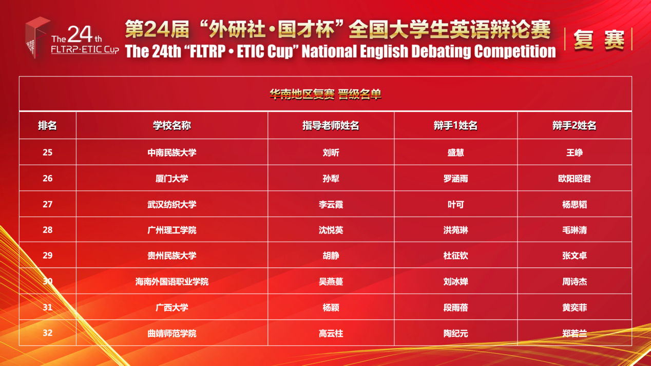 4月15日至16日,第二十四届“外研社·国才杯”全国大学生英语辩论赛华南赛区复赛在线上举行。此次赛事吸引了来自广东省、海南省、江西省、湖北省、湖南省、香港特别行政区、澳门特别行政区、台湾省等共计112所从校园选拔赛中脱颖而出的代表队。经过各高校代表队的激烈角逐,我校成人文学