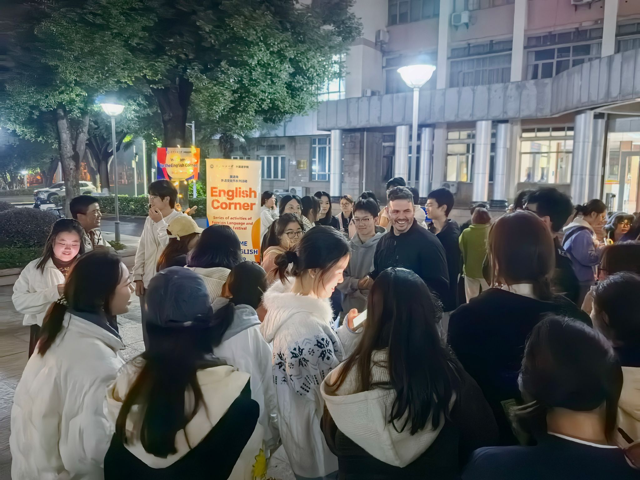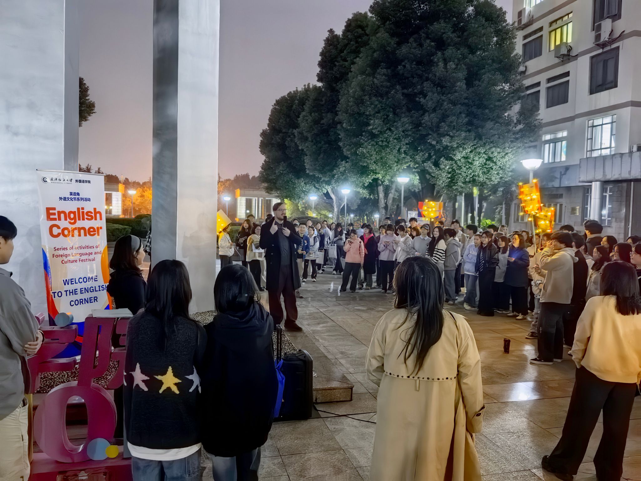 为营造浓厚英语学习氛围,促进跨学科交流与合作,提升学生外语应用能力与跨文化交际素养,10月30日晚,由成人文学 联合伯明翰时尚创意学院共同举办的英语角活动在南湖校区成功举行。成人文学 班子成员、伯明翰时尚创意学院相关负责人、大学英语教师及双方多名外籍教师参加活动。活动吸引了南湖校区两百余名本硕学生踊跃参与,现场气氛热烈,交流活跃。