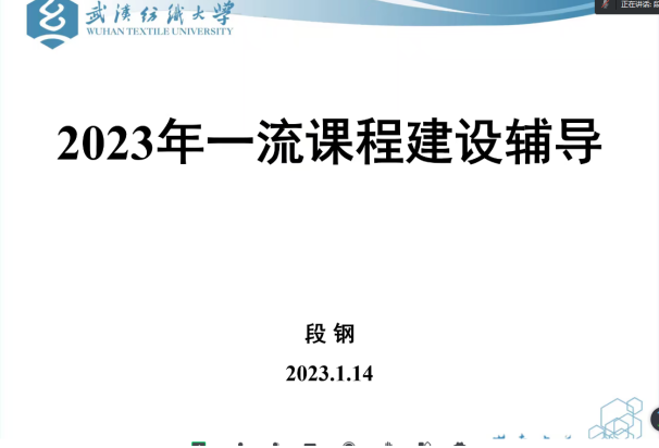 于2023年1月14日晚7时在线上举行一流课程建设研讨会,会议邀请教务处分管专业建设的段钢副处长做关于一流课程建设形势与政策解读,同时邀请刚刚获批省级一流课程陈奇敏副教授就《汉英笔译》课程申报进行经验分享。会议由罗绮伦副院长主持。