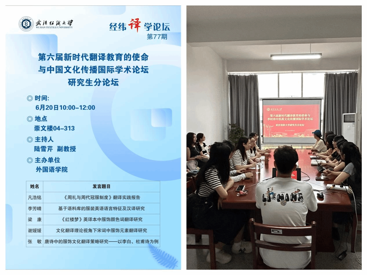 6月20日,第77期经纬译学论坛之第六届新时代翻译教育的使命与中国文化传播国际学术论坛研究生分论坛在04-313成功举办。分论坛由成人文学