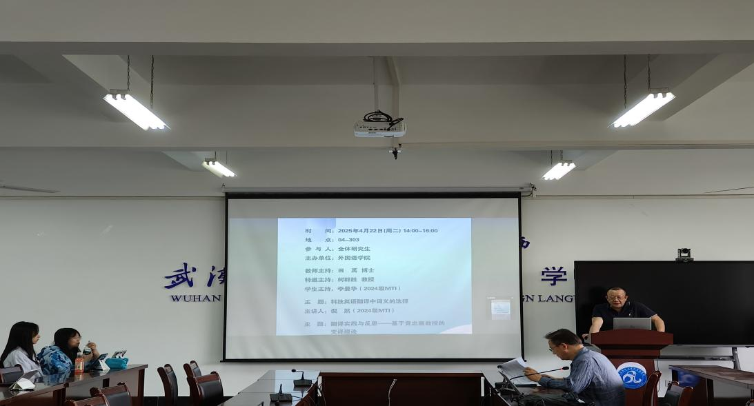 在崇文楼303教室举办了第九十三期“经纬译学”研究生论坛。柯群胜教授和田禹博士分别作为特邀点评嘉宾和教师主持,24级MTI研究生李曼华担任学生主持。倪然、黄赢纪、吴传琦三位24级MTI研究生在论坛上进行了分享。