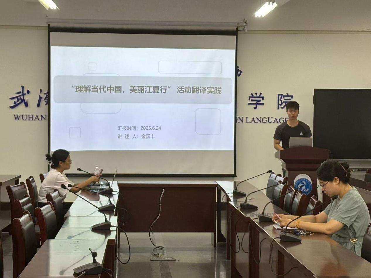 本次论坛第一位分享的同学是金国丰,他分享的主题是“‘理解当代中国,美丽江夏行’活动翻译实践”。他结合自己和发展中国家棉花加工纺织与贸易研修班的学员共同参加的实地研学活动经历,从翻译任务概述、翻译活动与总结反思三个方面进行了分享。他重点分享了此次翻译活动相关的术语库以及需要注意的重难点,并进行了反思总结。他认为做翻译需要提高翻译准确率与效率,提升跨文化交流技巧,同时还要注意语言表达的流畅性以及文化理解深度。
