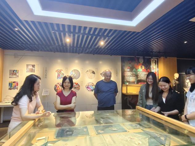 南湖校区纺织非遗馆,负责人周老师从不同方面对荆楚非遗文化进行了讲解,共同展开了一场别开生面的文化之旅。本次活动旨在促进中外文化交流,推动中国传统非遗技艺的国际传播与学术研究。