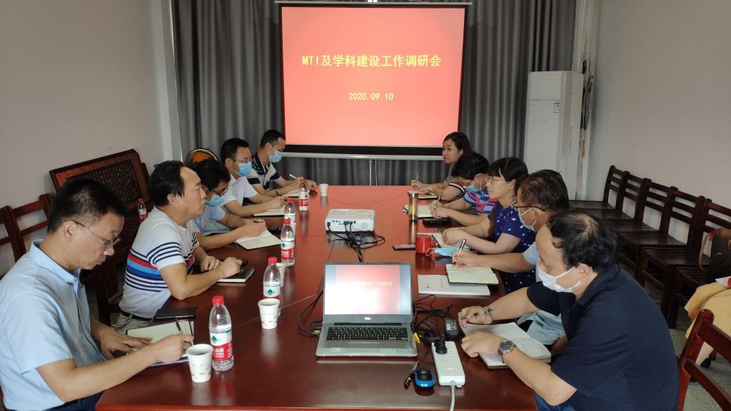 院长谭燕保汇报了我校翻译硕士(MTI)专业学位点经过一年多的建设和发展所取得的成绩与不足,并围绕MTI学科特色上水平、人才培养上质量所采取的一些举措和计划做了重点介绍,最后分析了为迎接两年后的MTI专项评估仍存在的困难。副院长柯群胜具体汇报了我校MTI学位点建设在翻译实训室的扩容与升级、师资队伍的建设、以及学生的翻译实践与创新等方面还需要学校各部门给予支持的情况。