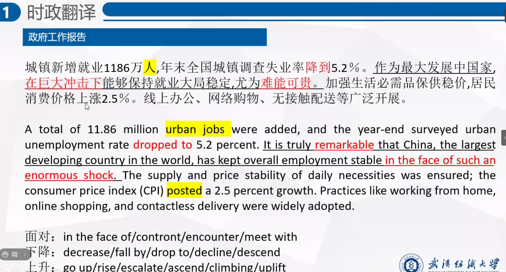 随后,与会老师和同学进行了交流与研讨,并对其分享内容发表了自己的观点和建议。师生们就翻译策略、翻译方法和翻译技巧等概念的区别,如何发挥译者主体性等相关问题进行了激烈讨论。曹博士肯定了两位同学善于总结反思的学习精神,强调源文本词义理解一定要结合语境,建议在翻译时要结合文本翻译选择策略,翻译实践报告要把握好撰写时间节点要求。刘珊副教授表示,两位同学的分享很有实用性,对20级同学撰写翻译实践报告很有启发,同时她还分享了北外李长栓的翻译实践报告CEA框架,并以黄文船同学在翻译中遇到的garment和costume的选择困惑为例,讲解了语料库在近义词辨析中的作用。陈奇敏副教授强调源文本理解的重要性。她还建议同学们应该合理使用机器翻译,不要过度依赖机器翻译;对于机器翻译的译文,一定要进行译后编辑。