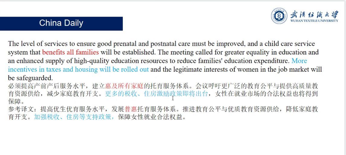 韩笑同学以“中国关键词”翻译以及《大地》的读书分享为主题,回顾了2020-2021上半年社会热点话题,对本周的CATTI考试进行了热点预测,归纳了“脱贫攻坚”翻译的反思心得,并对《大地》的语言风格和中国人对于土地的特殊情怀提出了独到的个人见解。