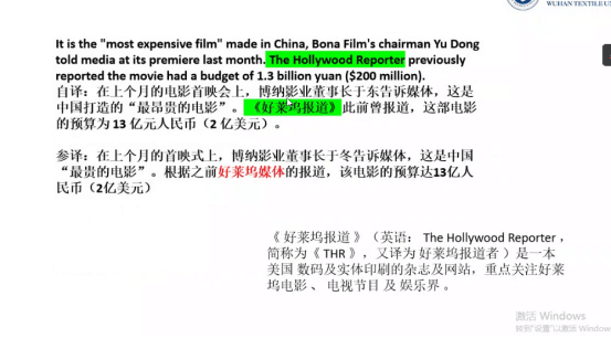 肖甜同学以“翻译练习评析以及查证经验分享”为主题,就外刊对当下热点电影《长津湖》的一篇评论报道做了翻译练习,并结合相关译文做了评析。老师们对政治新闻翻译中的意识形态转换问题都提出了自己的看法:意识形态决定了译者翻译策略的选择,而且反映了译者个人的政治立场与政治责任感。在不同的语境下,要做翻译转换,在保持自己的立场和保留原作者的态度之间做更好的权衡。另外,肖甜同学毫无保留地分享了翻译查证经验,分享了很多自己总结的网络查学习资料和翻译软件,并对这些网站和软件做了逐一介绍,同学们都表示干货满满,学到很多。