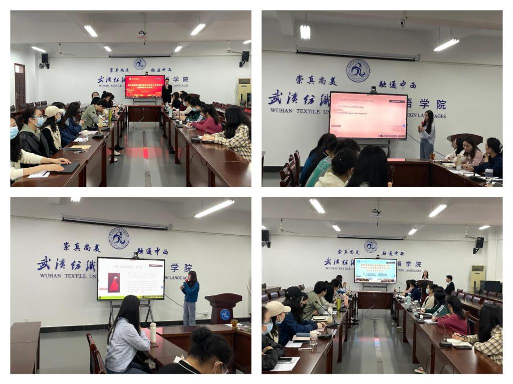 的特色专业出发,选取服装周热词及服饰专有名词进行翻译探讨,结论如下:遵循准确性和一致性策略;主要采取交际翻译法;以译文读者为中心,发挥译者主动性。柯萌的汇报主题为《湖北省博物馆文物名英译研究》,介绍文物名翻译方法,批判看待省博文物名翻译,提出了自己对部分文物名现有翻译的思考。罗可伊的汇报主题为《女性主义翻译理论视角下的<使女的故事>服饰翻译赏析》,不仅分析了《使女的故事》中服饰的翻译技巧,也提出了自己对女性主义的见解:冲破束缚、清醒独立、勇于抗争、女性互助。