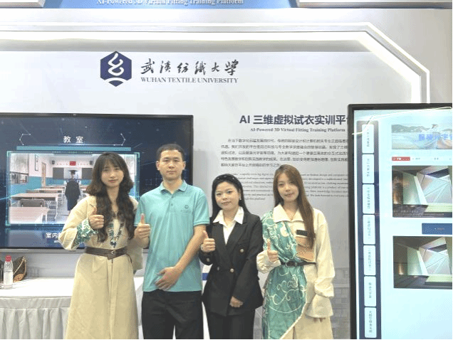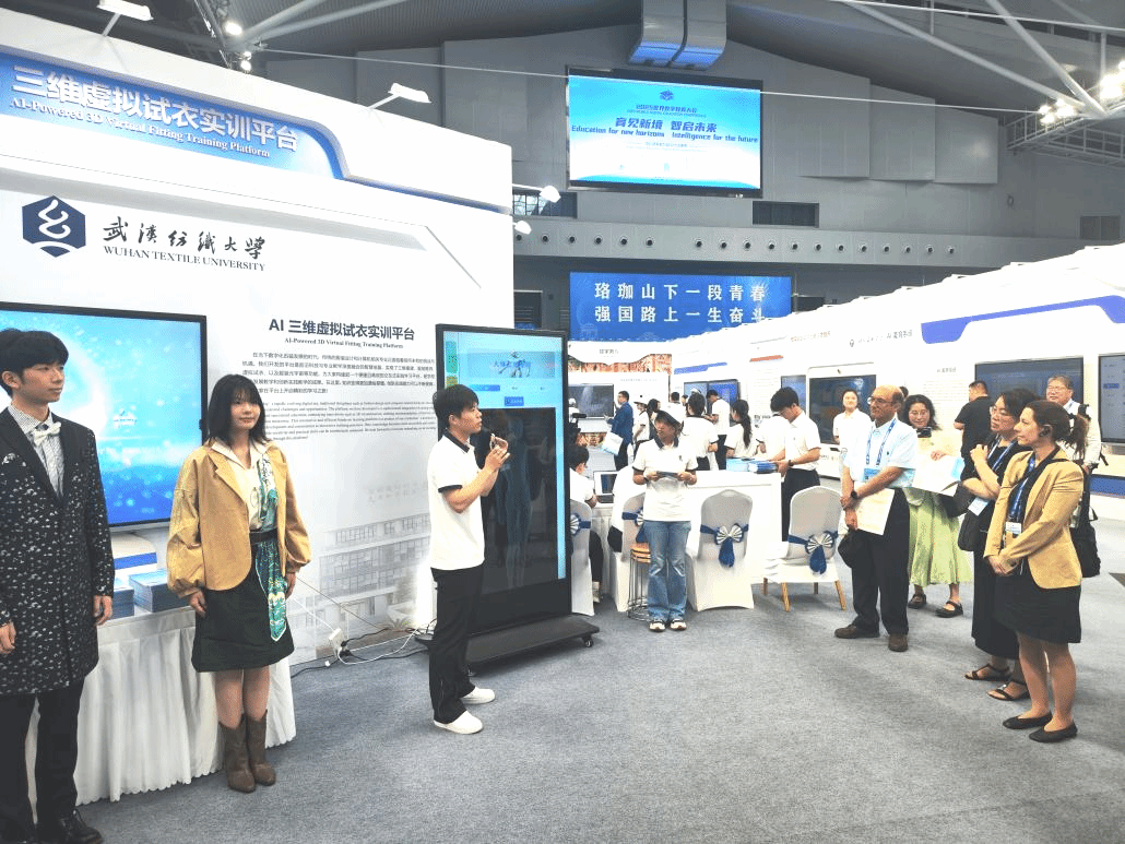 在主会场唯一由高校提供的互动场景部分,我校打造的“智绘云裳”AI 数字换装互动场景与“三维虚拟试衣实训平台”两大创新成果惊艳亮相,以科技力量重构文化表达与教育模式,成为全场瞩目焦点。成人文学 23级MTI研究生周华科和钟依恋作为讲解员代表,向全球嘉宾展示了我校AI 3D虚拟试衣实训平台,彰显了我校在教育数字化领域的创新实践成果,为中外教育交流搭建了重要桥梁,也展示了我院MTI研究生的风采。