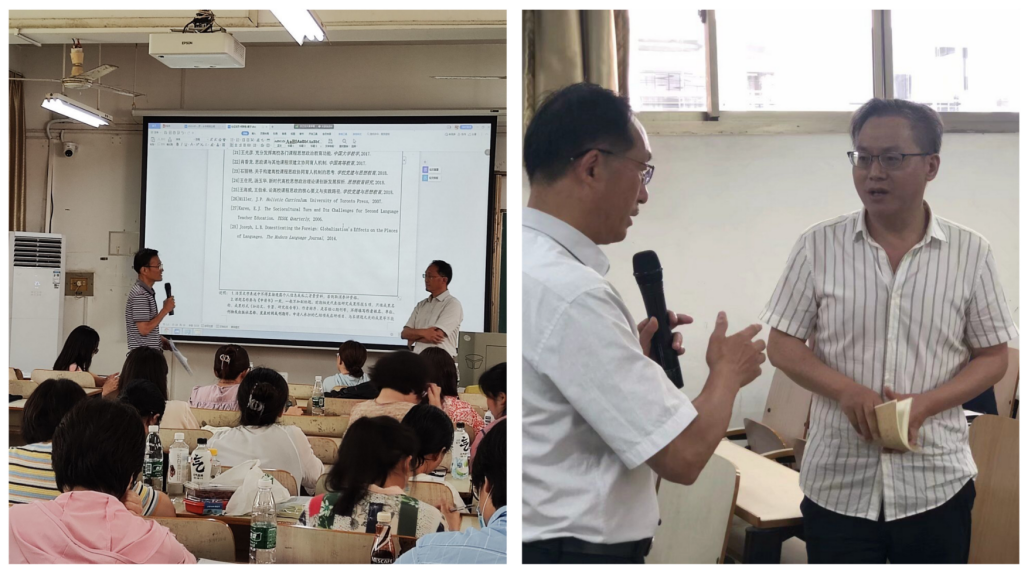 第一届教师学术能力提升研修班进入第二天,广东外语外贸大学黄忠廉教授和湖南大学刘正光教授为研修班做报告。成人文学