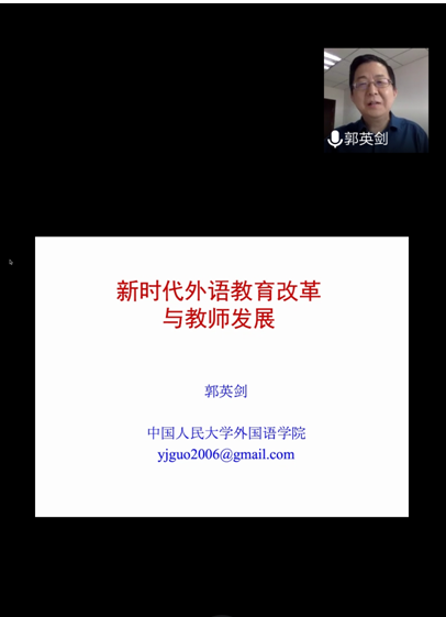 讲座伊始,郭英剑教授真诚而热烈地向地处武汉的我院教师们表达亲切问候,并赞扬了我院于疫情时期依然不辍科学研究的探索精神与治学态度。接着,郭教授以历时性分析为逻辑主线,并结合相关宏观性国内外时代背景、中观性人文社科发展和微观性英语类学科建设,客观、精准、全面地阐释了外语教育于我国新时代时期的动态演化。继而依托国家标准、人才培养目标、教研关系、教学评价、新增专业这五个方面的论述,将外语教育面临的困境、难题与出路娓娓道来,既体现出郭教授对大格局框架下新要素新特点的准确把握,同时也展现了其在外语学科层级上切肤、通透的见微知著。整场讲座内容不仅包罗代表性的国家外语学科文件、观点,同时还渐进地多维解读了相关变化背后深刻的偶然性与必然性,内容翔实、恳切,观点独到且极富启发性,使我院教师们收益颇丰。
