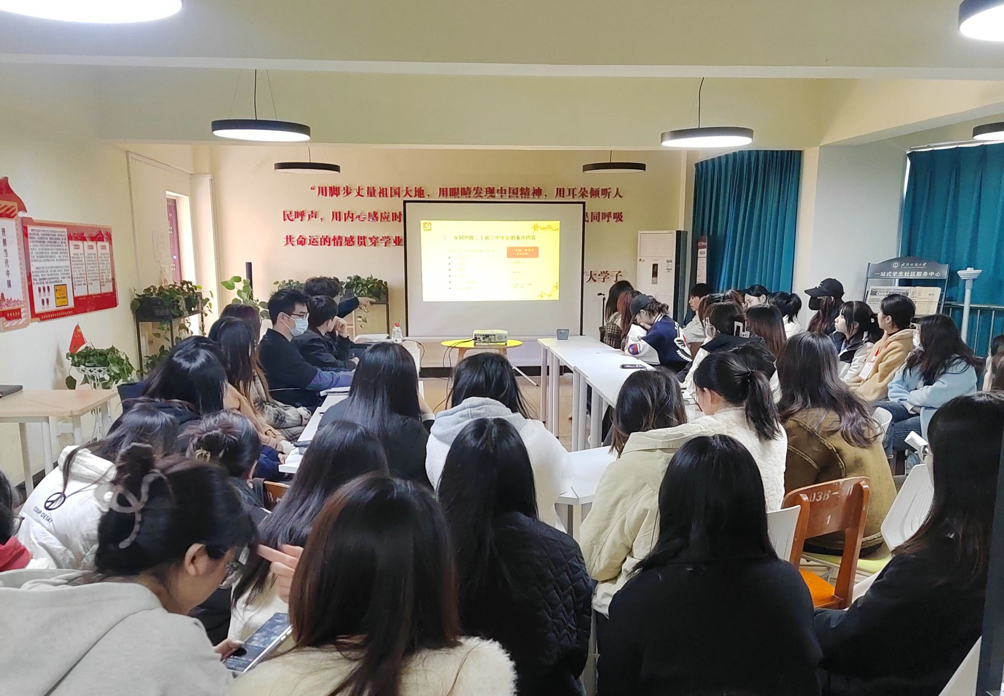 党委书记胡中原在读“习”有声一站式学生社区为学生党员作专题宣讲,学生党支部书记和学生党员参加会议。