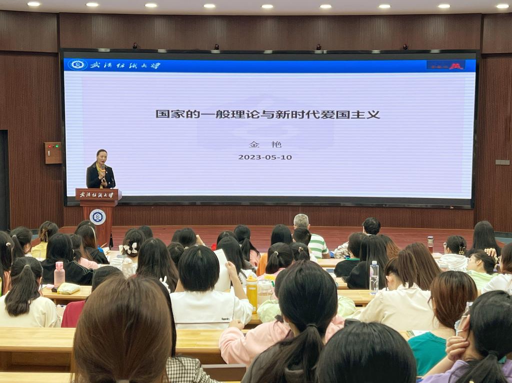 5月10日下午,校党委常委、组织部部长金艳教授以“国家的一般理论与新时代爱国主义”为题,在阳光校区3号教学楼T201为成人文学