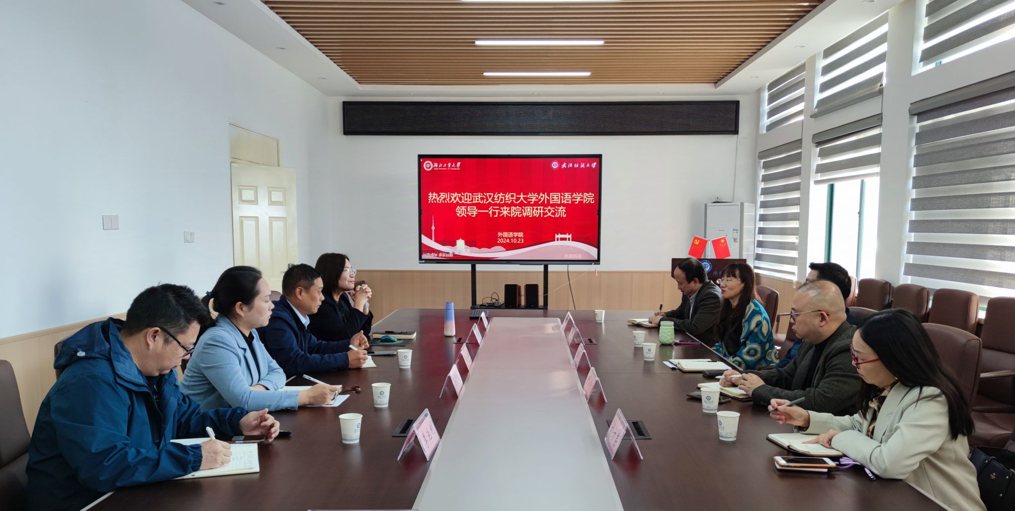 为加强与兄弟高校的合作与交流,进一步做好人才培养和教学改革,推动学院高质量发展,切实推进“美好纺大”建设。10月23日上午,院长谭燕保、书记胡中原带队赴湖北工业大学开展调研交流,副院长罗绮伦、刘方荣、副书记彭阳慈航、办公室主任熊铮陪同调研。