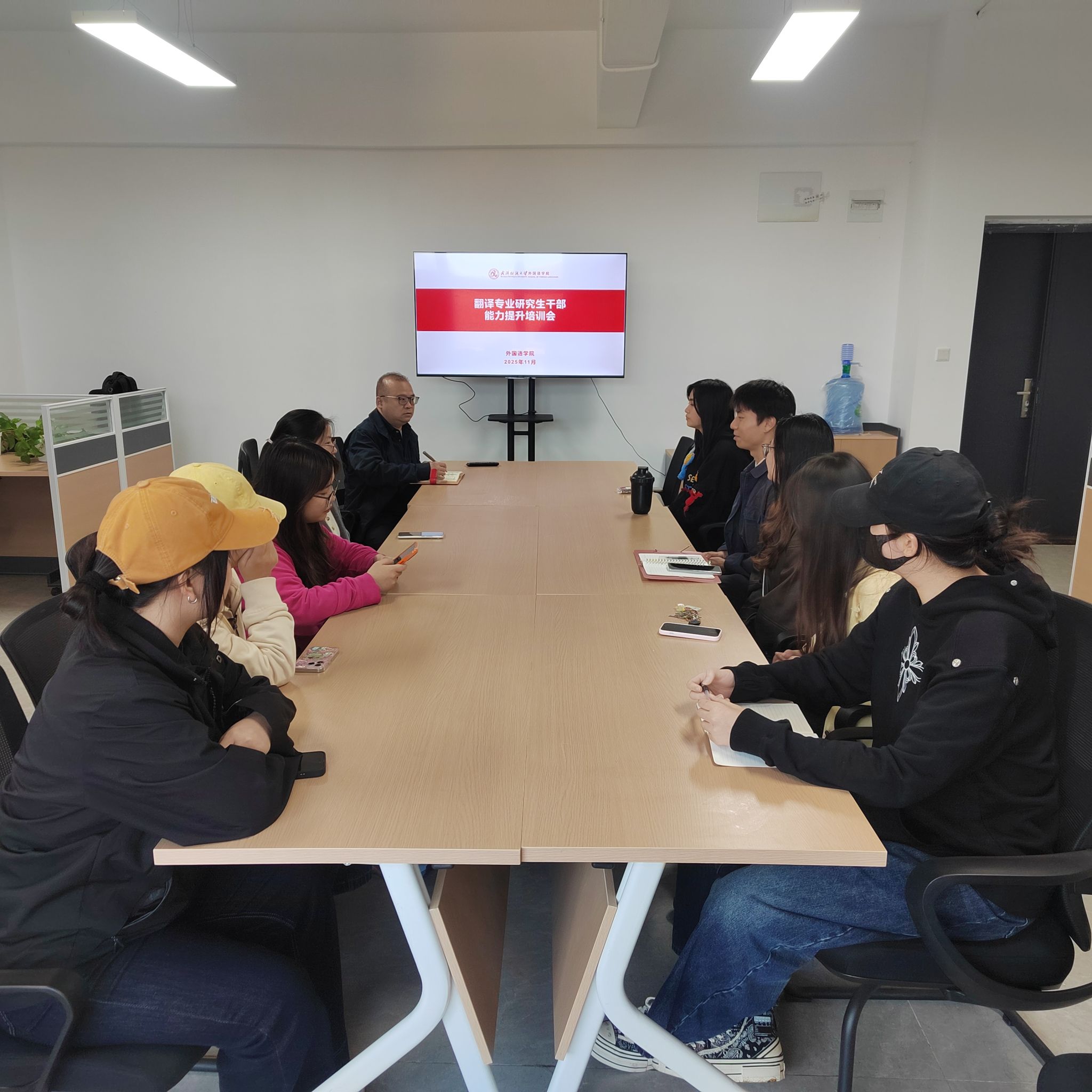为加强研究生干部队伍建设,提升其思想素养与综合能力,11月13日,成人文学 组织召开“研究生干部能力提升培训会”。本次培训由学院党委副书记主讲,全体翻译专业研究生干部参加。