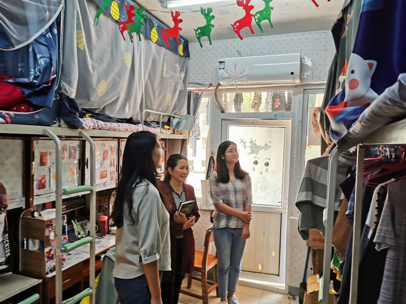 10月9日下午,在阳光校区2栋学生宿舍楼,黄运平副校长走访了“联系寝室”2栋B座111寝室,黄校长详细询问了同学们大三期间的学业规划,了解她们对未来的美好期待。学生郭新月谈到,目前在寻找考研目标学校,为下一步确定适合自己的考研学校、专业做足准备工作,希望在大四毕业时可以不留遗憾。学生杨晓说,正在准备教师资格证的复习备考,希望以后可以回家乡做一名英语教师,用自己的知识和能力支援家乡建设。黄校长高度赞扬同学们“敢于有梦、勇于追梦、勤于圆梦”的青春姿态,她鼓励同学们继续朝着既定目标努力奔跑,早日实现梦想。交谈结束后,黄校长与寝室成员互留了联系方式,她希望同学们能够在学习、生活遇到困难时,随时与她取得联系,这让同学们真切感受到了来自学校领导和老师的温暖与关怀。