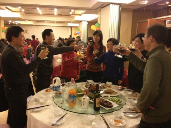 领导和教师们纷纷端起手中酒杯,向老教师们送去新春祝福,祝愿他们身体永远健康,生活幸福如意。两位老教师都表示,要继续关心青年教师,关注学院发展,并期待成人文学