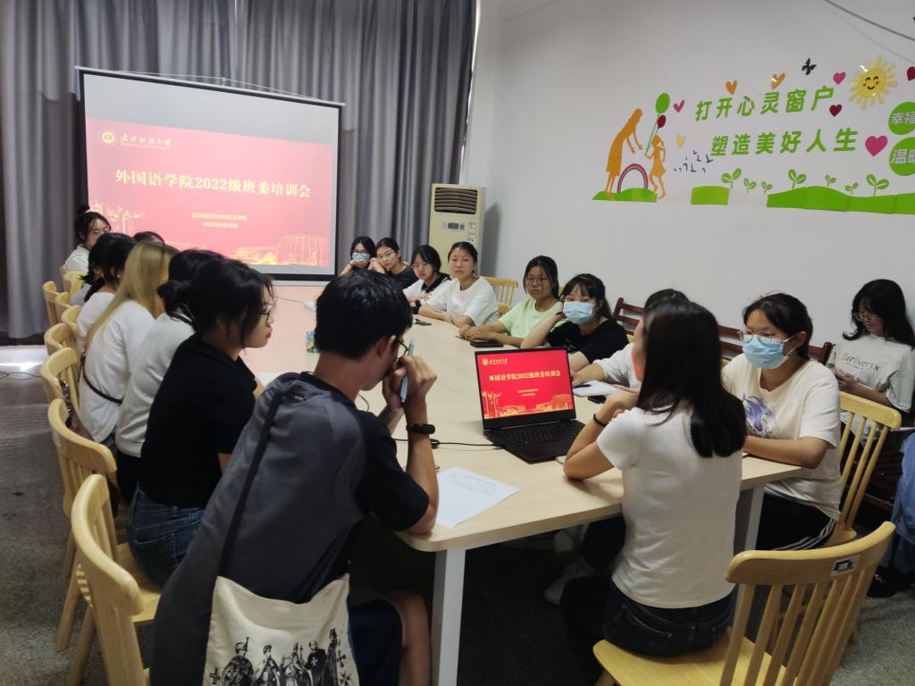 2022级班委培训会,辅导员甘新敏主持会议,全体2022级班委参加会议。