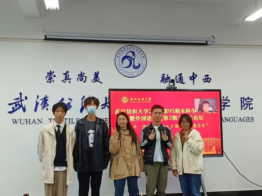 于2022年11月17日下午在04-303展开第九十五期本科生论坛,论坛主题为“学术、学科竞赛- 人才培养的两驾马车”。论坛发言人分别为英语11902班樊静萱、商务英语12001班何昊然和叶可、商务英语11901班朱腾、商务英语12201班罗浩诚。刘芳荣副院长,彭阳慈航书记、黎健老师、袁哲老师和吴志杰老师应邀参与了论坛。本次论坛以推进学术层面的纵深发展、扩大学科竞赛的横向影响力为目的。