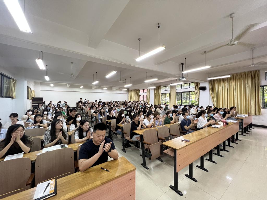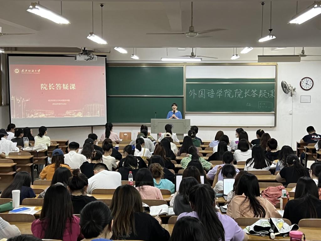 在场学生通过主持人,提出了现阶段的一些困惑:有的学生陷于英语专业的繁重备考中左支右绌,纠结于是否要跨考相对轻松的专业;有的学生迷茫于商务英语专业的就业前景,不知在暑期的黄金时间该从何发力。谭院长提醒学生,对于第一类问题应当按照考研四类情形的难易排序,代入自身的情况具体分析,对于第二类问题,学院近期已与跨境电商企业签订了校企合作,将进一步拓展商英专业学生的就业渠道。班主任黎健副教授表示商英专业要求学生具备英语、运营、互联网、营销、电子商务等方面的综合素质,在当前经济发展大潮流上属于朝阳行业,只要肯埋下身子,沉住气深耕行业一段时间,必定大有可为。