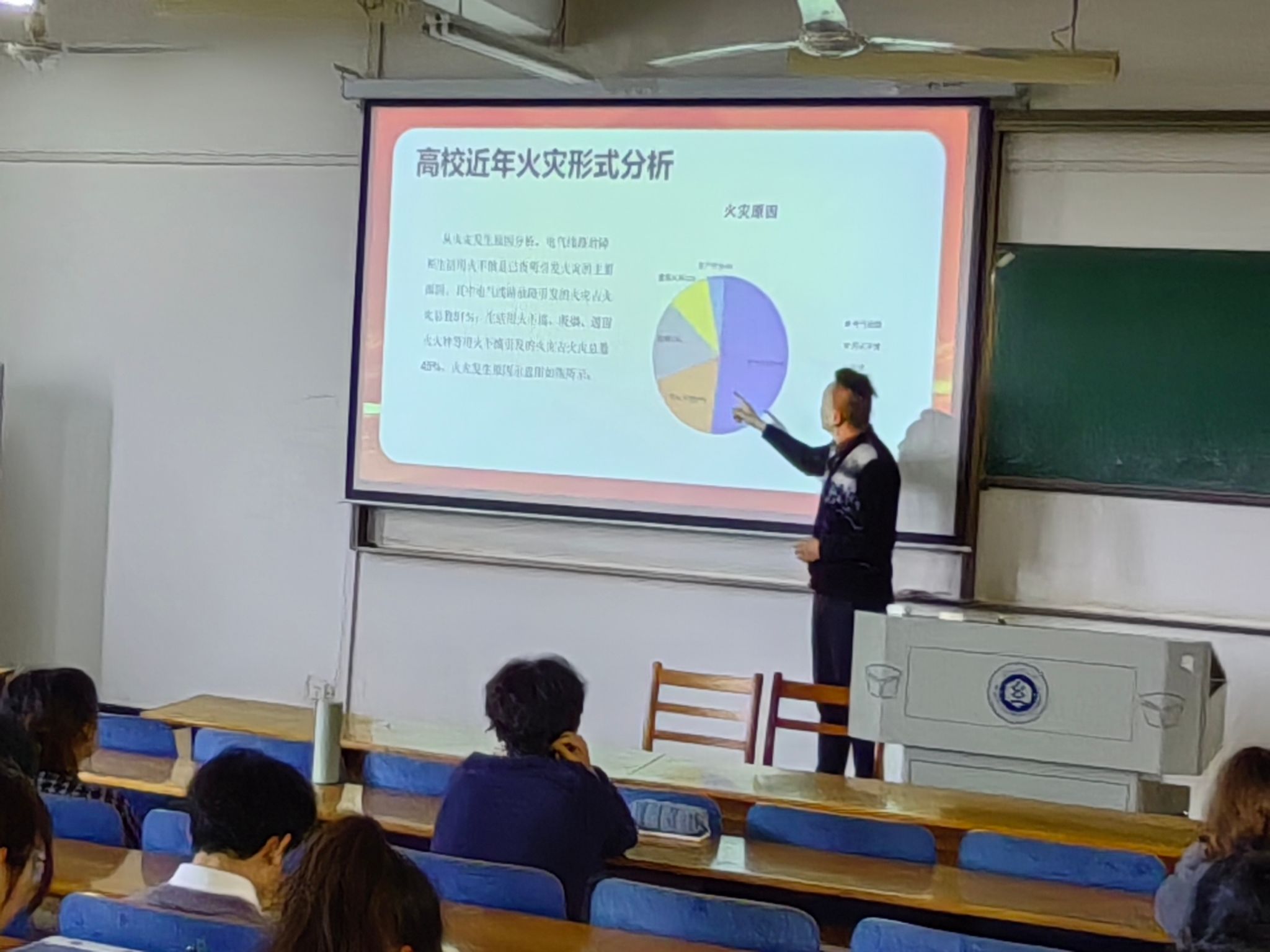 专题讲座环节,陈斌老师针对校园火灾事故典型案例进行了剖析,重点讲解了消防安全“四个能力”,并现场演示灭火器的正确使用方法与注意事项,强调同学们要以案为戒,汲取教训,增强校园消防意识,提高应对火灾突发事件的应急处置能力。
