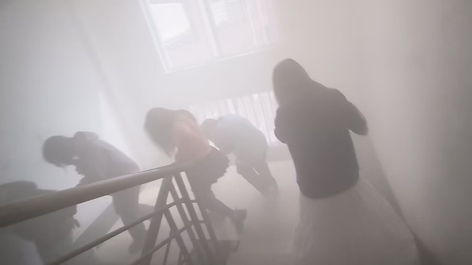 实战演练环节,火灾逃生疏散在阳光校区3栋“读‘习’有声”学生成长驿站进行。师生在听到“火警”的撤离信号后,用湿毛巾捂住口鼻,弯腰俯身,从宿舍各消防通道迅速撤离,亲身体验火灾疏散自救经历。刘诚老师结合现场演练情况,就如何预防火灾、怎样正确报警、逃生注意事项等进行了补充强调,提醒大家遇到火情莫慌张,运用正确的逃生技巧自救。