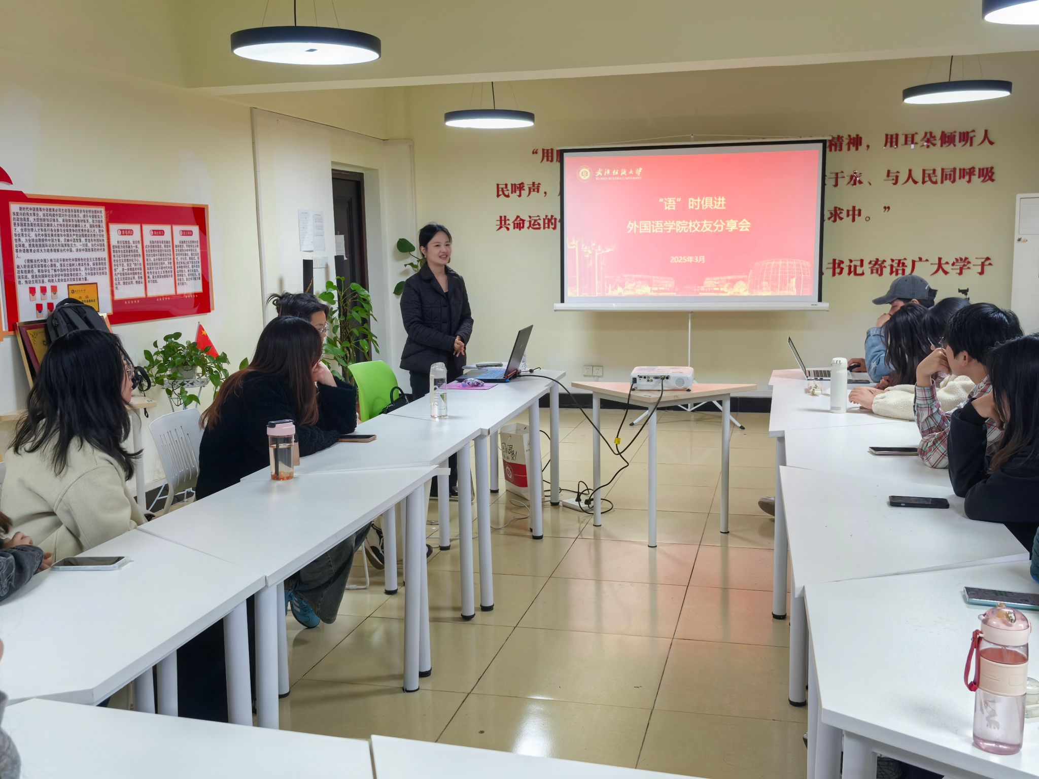 3月20日下午,成人文学 在读“习”有声一站式学生社区举办“语”时俱进·成长导航校友分享会,17届研究生校友,青橙创星企转网创始人严霜返校分享成长经验。