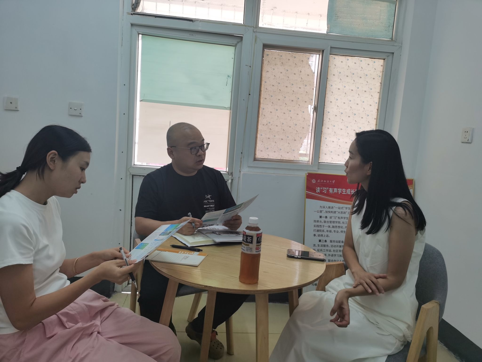 一站式学生社区,与党委副书记彭阳慈航,辅导员甘新敏交流2025届毕业生秋招信息。刘秀珍表示武汉合智欢迎英语、商务英语专业的师生赴公司参观交流,期待与学院进行深入合作。