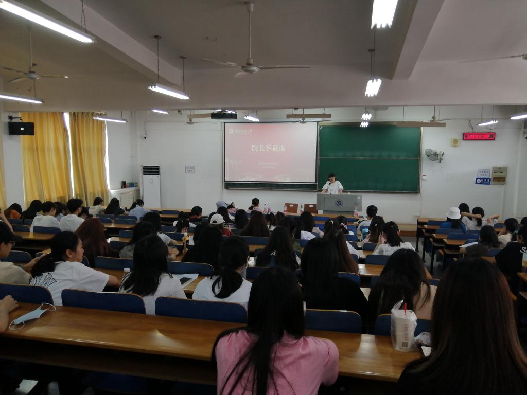 在崇志楼418教室开展“院长答疑课”,学院院长谭燕保,大一班主任和全体2021级学生参加此次活动,年级辅导员甘新敏担任主持。