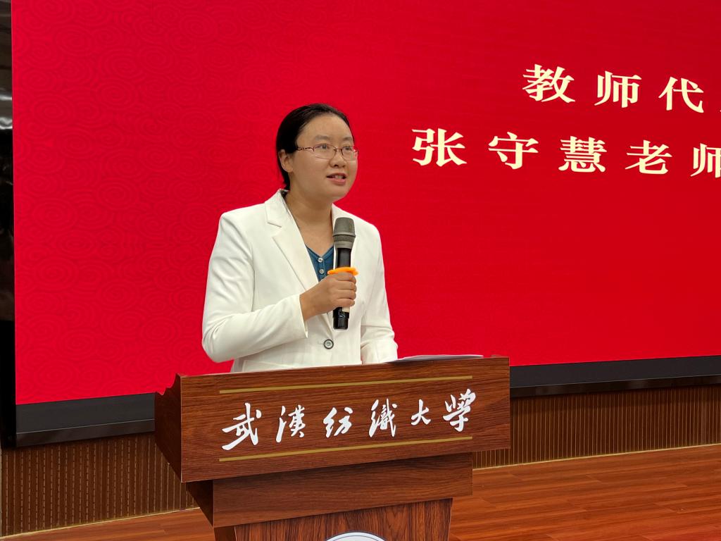 张守慧老师作为教师代表发言,张老师结合自己的成长经历对学习和生活给出了建议。张老师认为新生同学除了自己的专业,还应辅修或自修自己感兴趣的专业,主动寻求帮助,广交朋友,同时塑造坚毅的品质,爱自己,并期望同学们成为更伟大更强大的自己。