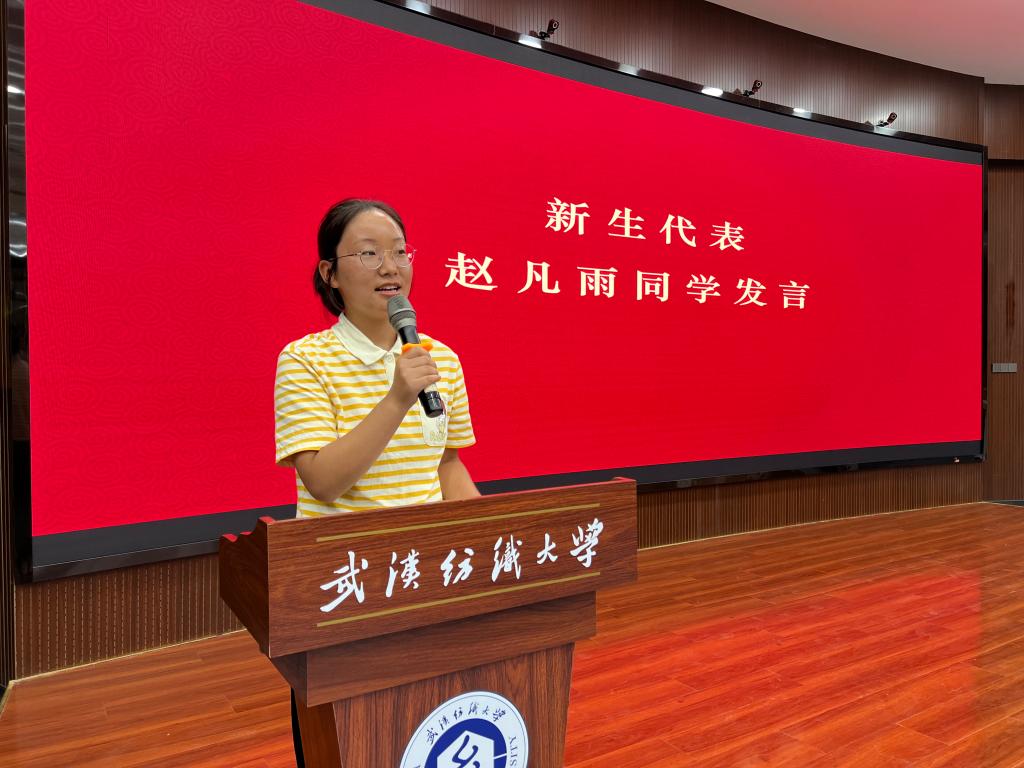 商英12301班赵凡雨同学作为新生代表发言,向新生提了三点建议:适度自由,合理规划;脚踏实地,自强不息;把个人理想与国家战略紧密结合。
