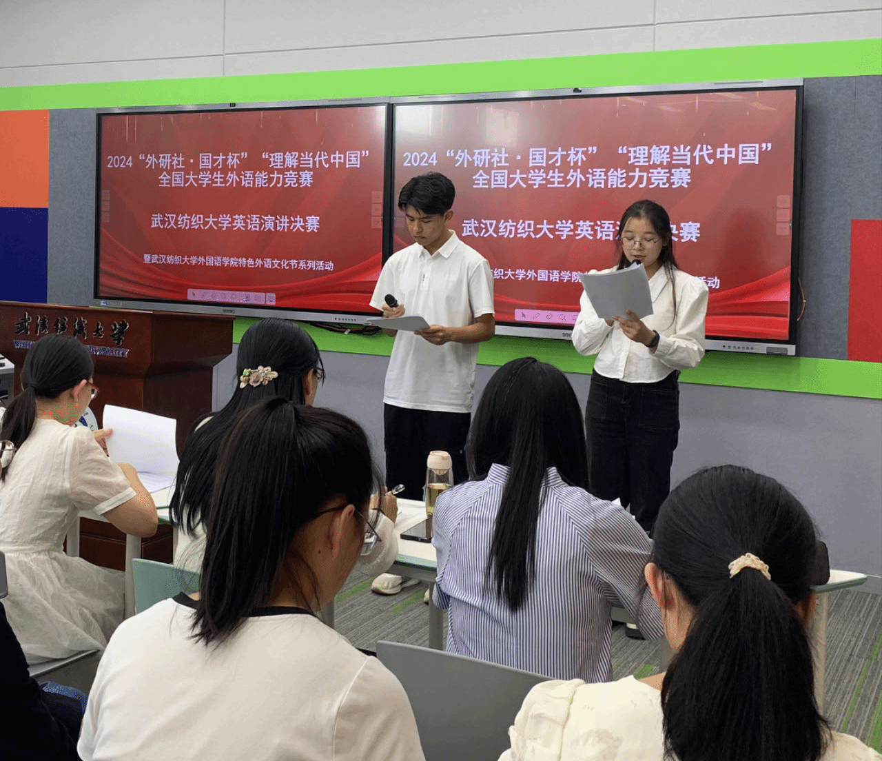 9月26日下午,学院组织新生现场观摩了2024“外研社·国才杯”“理解当代中国”全国大学生外语能力竞赛成人文学