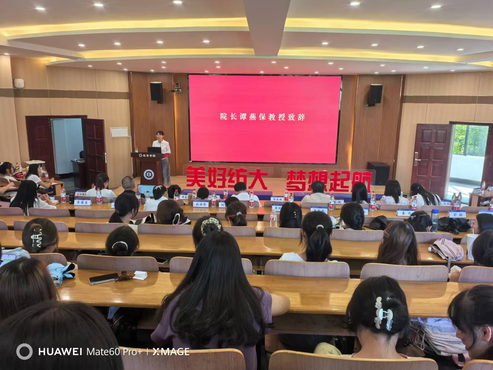 9月24日下午,学院举行新生开学典礼暨新生院长答疑课,院长谭燕保教授围绕“何以自我”这个主题,通过对校长徐卫林院士在全校新生开学典礼中所提到的“兴趣力、自学力、抗压力”进行英文翻译,从“兴趣力”(Self-Motivation Development)“自学力”(Self-Cultivation Enhancement)“抗压力”(Self-Adaptation Improvement)三个方面鼓励新生积极向内探索,探寻“何以自我”,通过不断地自我学习和塑造成为有颜、有才、有用、有趣的人,成为有国际视野和家国情怀的新时代青年。教师和新老生代表也先后发言,给出建议,表达决心。9月生日的师生在典礼上共同举行了集体生日,现场更添温馨。学院党委书记胡中原最后用“四新”祝福全体新生:“跨进纺大新校园,谱写外院新篇章,勇攀人生新高峰,再创学业新辉煌。”