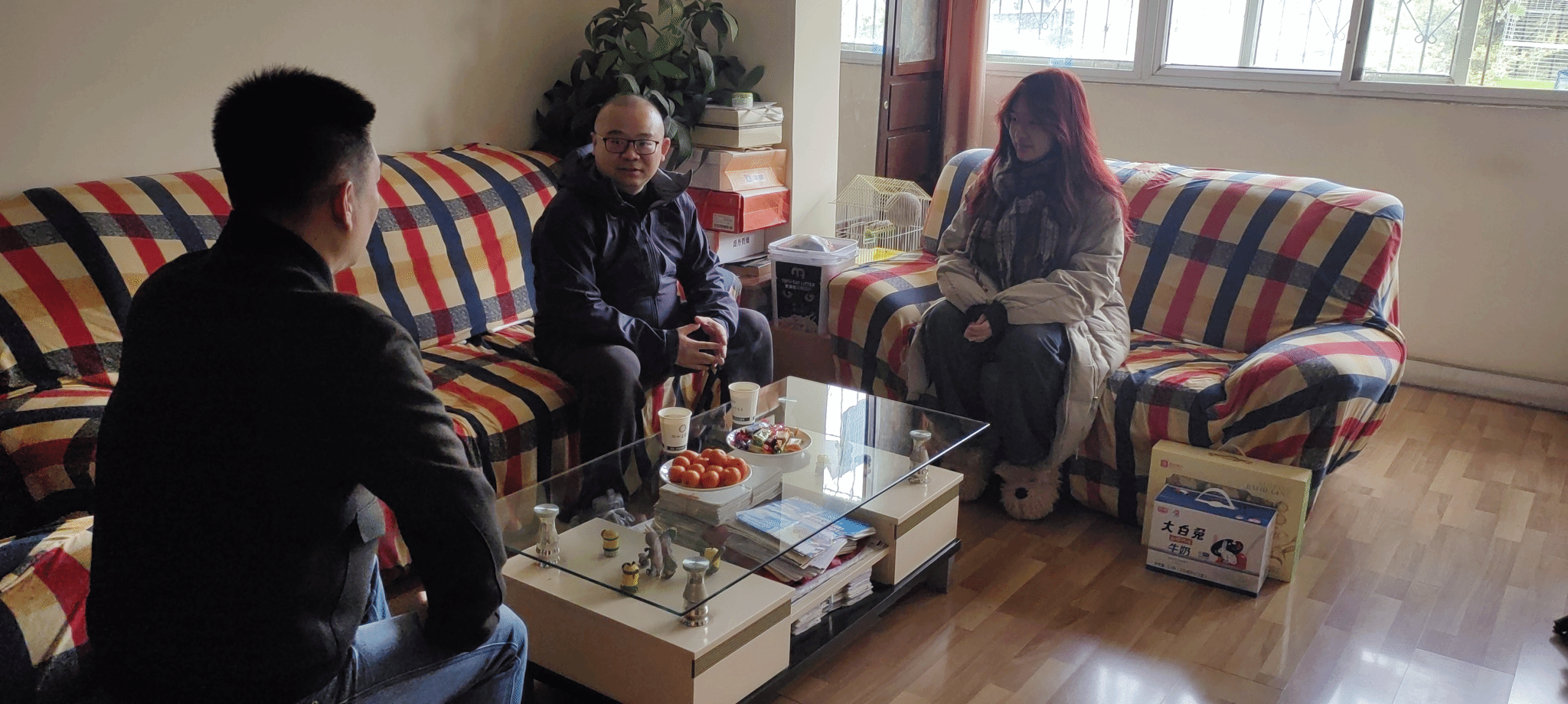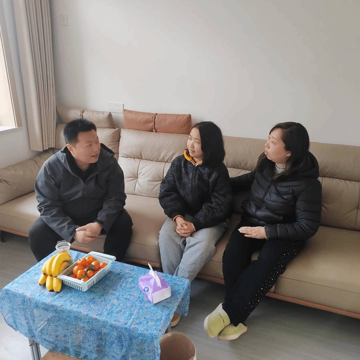 在22级英语专业小张同学家中,老师们对家长普遍关注的学生在校情况、考研趋势、实习就业等问题,结合学校特色和专业特点进行悉心解答。老师们鼓励小张同学利用寒假时间,保持良好的学习状态,敢于追梦、勤于圆梦。
