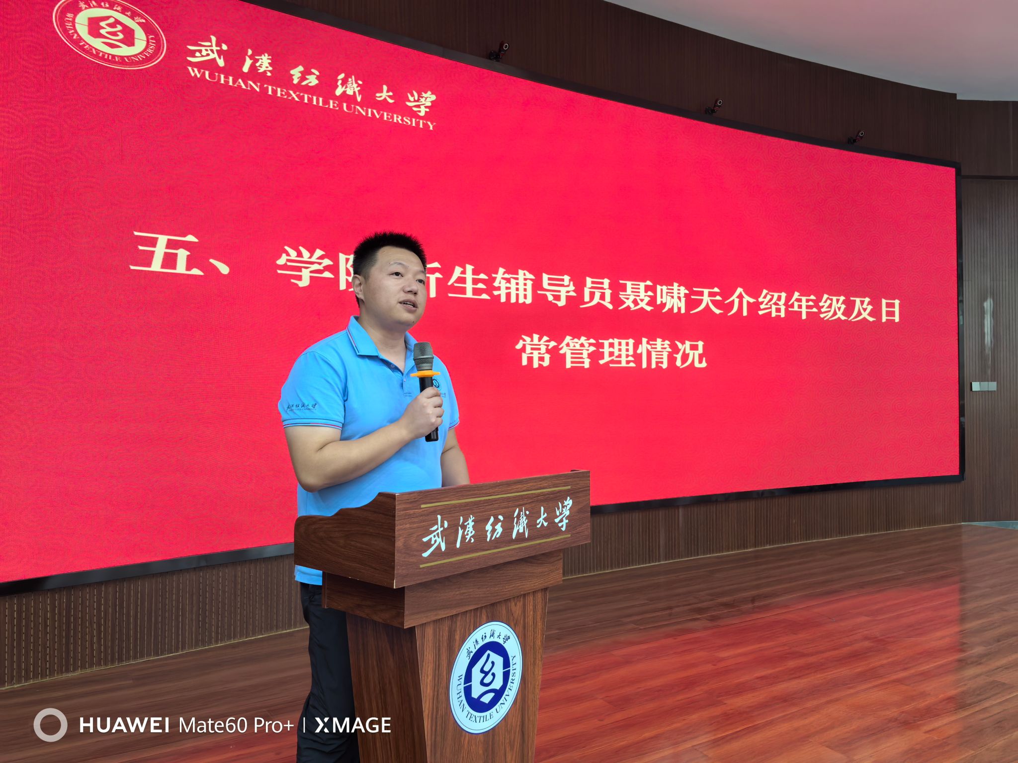 新生辅导员聂啸天老师详细介绍了学院2024级新生情况以及学校生活学习环境、入学教育安排,他强调同学们要迅速适应大学生活,牢记学习是大学最重要的事情,同学们要合理做好大学生活规划和职业规划,发扬自己爱好的体育锻炼,积极参加校园活动,脚踏实地一步一步地完成目标。同时,他提醒家长关注学生的心理状态,和孩子多多联系,一旦发现问题,立刻和学院联系。