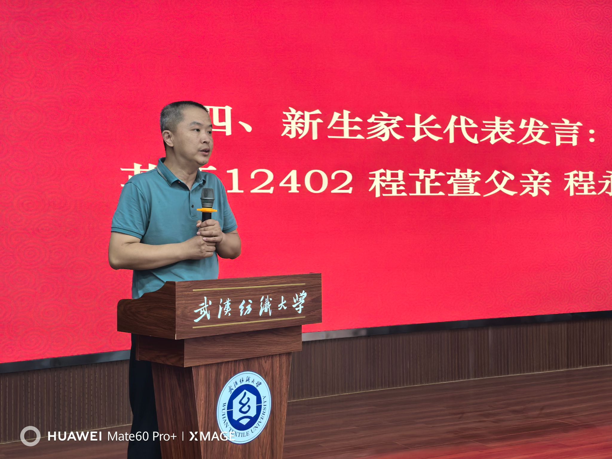 英语专业程芷萱的父亲程永强先生作为新生家长代表发言。他表示,学生教育不仅是学校的任务,也是家长的责任,家长和学校要保持密切的联系,共同关注学生的成长。他认为要注重培养学生的兴趣,兴趣是最好的老师和一切动力的来源;同时,他建议各位家长在学习和生活中多鼓励孩子,做孩子的知心朋友。