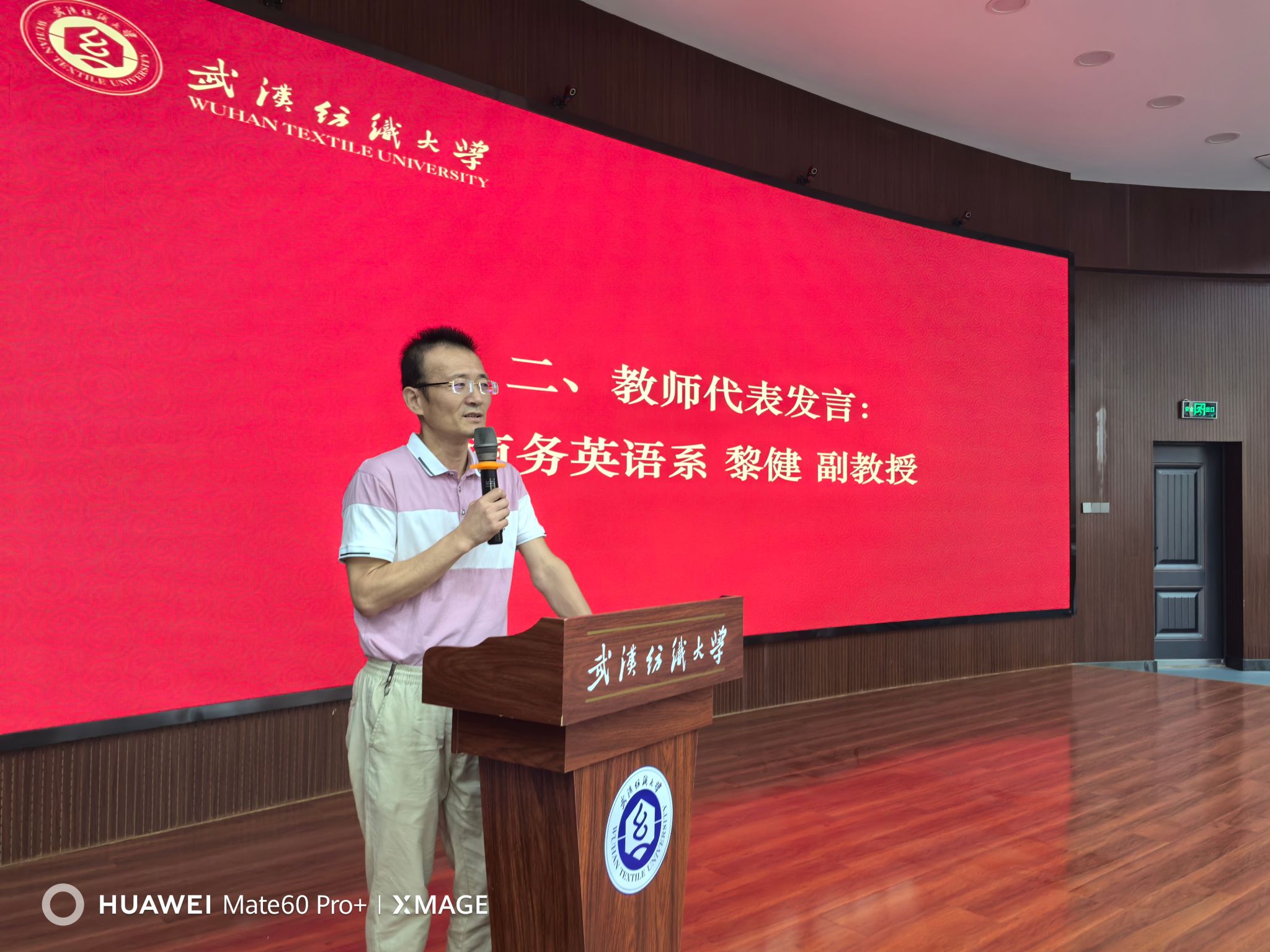 新生班主任代表田禹博士分享大学学习的方法和技巧,用“探索”一词形容大学阶段的学习,强调学生要积极转变学习心态,学好基本技能,将外语作为提升自我的良好工具。