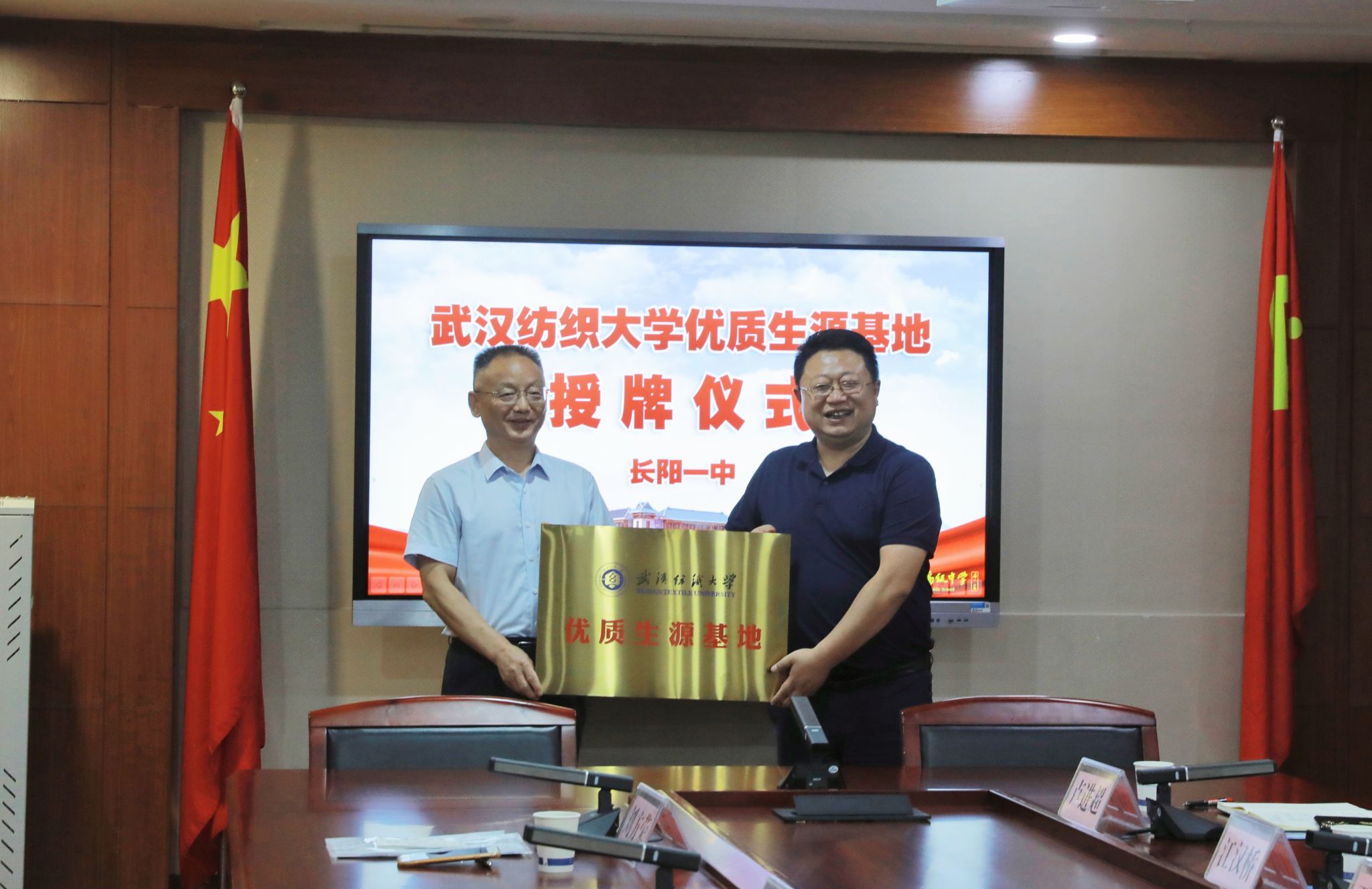 学习深造。罗锦银对宜都一中给予学校的支持表示感谢,介绍了学校发展历程、专业设置和招生政策,以及在科学研究、创新人才培养、社会服务和文化传承创新等方面取得的成就。随后在宜都一中的校门口举行了优质生源基地授牌仪式。宜都一中副校长王波、教务主任周治国、高三年级主任曹本先等参与授牌仪式。