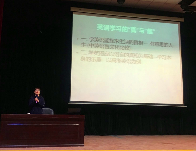 整场讲座,谭院长以“英语语言”为核心,以“中西方语言文化差异”为主线,将语言文化与英语教育相融合,从“有意思的人生”和“学习本身的乐趣”出发,论述英语学习中的趣味性,拉近与学生的距离。接着,谭院长引出关于英语学习的三个方面主要内容:“语言是存在的基础”、“语言的成与败”和“语言背后”。她从存在性和功利性两个层面,引导学生们对学习语言的重要性展开思考,并结合生动的案例,深入浅出地从模糊性与精确性思维、直觉性与逻辑性思维、整体性与分析性思维等方面就中英两种语言展开文化层级的比较。最后,谭院长还结合高考真题,重点就“动词非谓语”等语法难点展开讲解,为学生带来了一场学术盛宴,赢得了在场学生的阵阵掌声!