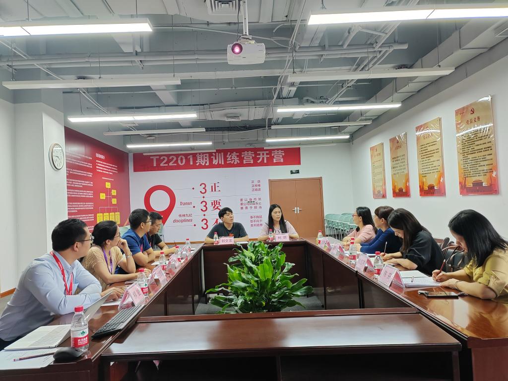 参观结束后,谭院长一行前往三楼会议室,与传神语联网公司代表们进行面对面的交流和研讨。传神公司饶敏介绍公司发展历程和校企合作情况,成人文学