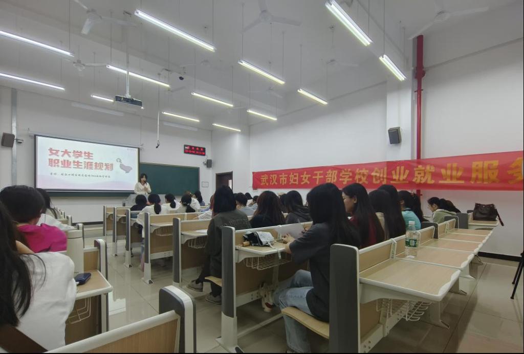 承办的女大学生职业生涯规划讲座在九号教学楼举行。