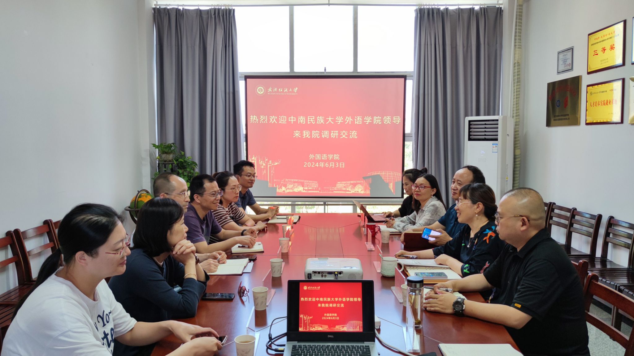 6月3日,中南民族大学外语学院一行六人,由院长易立新率领,来到成人文学