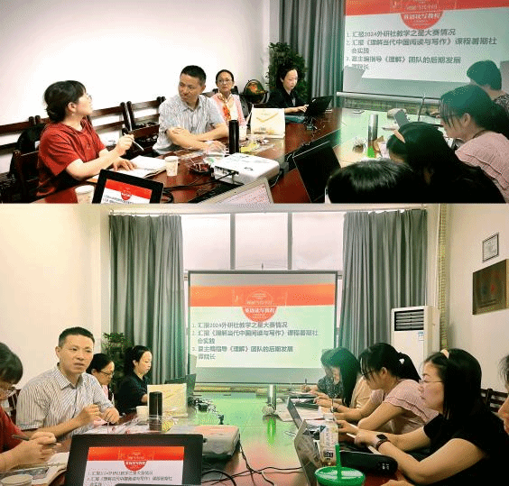 院长、课程团队负责人谭燕保教授主持,团队8位教师参与,于下午5点至20时在阳光校区04-313会议室举行。本次集体备课主要围绕今年5月团队教师参与的外研社“教学之星”大赛“理解当代中国”组别赛事,以及将理解当代中国的“故事讲述”从课内延伸至课外展开。