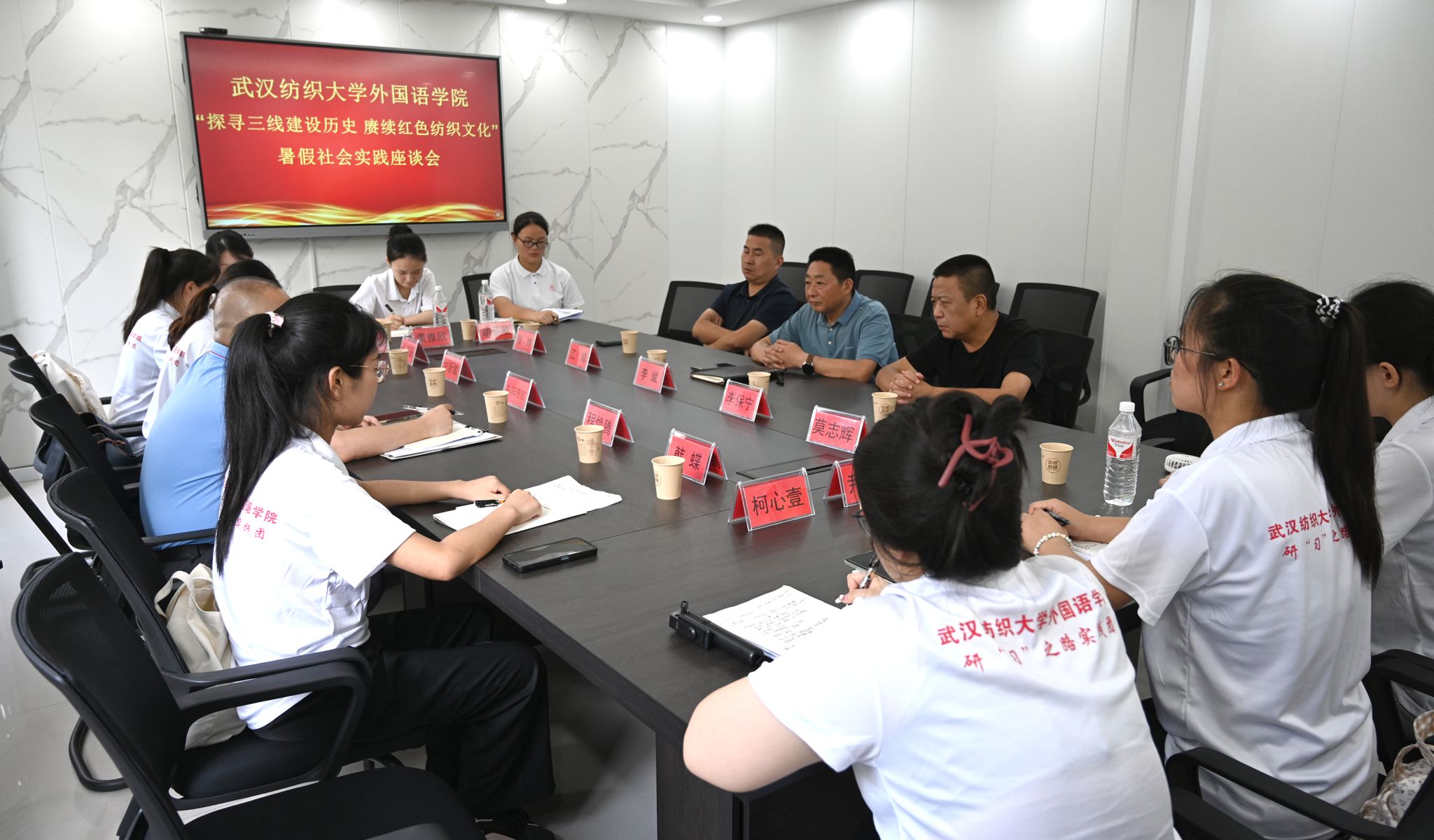 在蒲纺工委,副主任李斌和纺织服装企业家代表与实践团座谈,李斌结合三线建设历史和三线精神的传承,向实践团介绍了赤壁蒲纺片区纺织企业的发展历史、区位优势和未来规划,表示欢迎成人文学