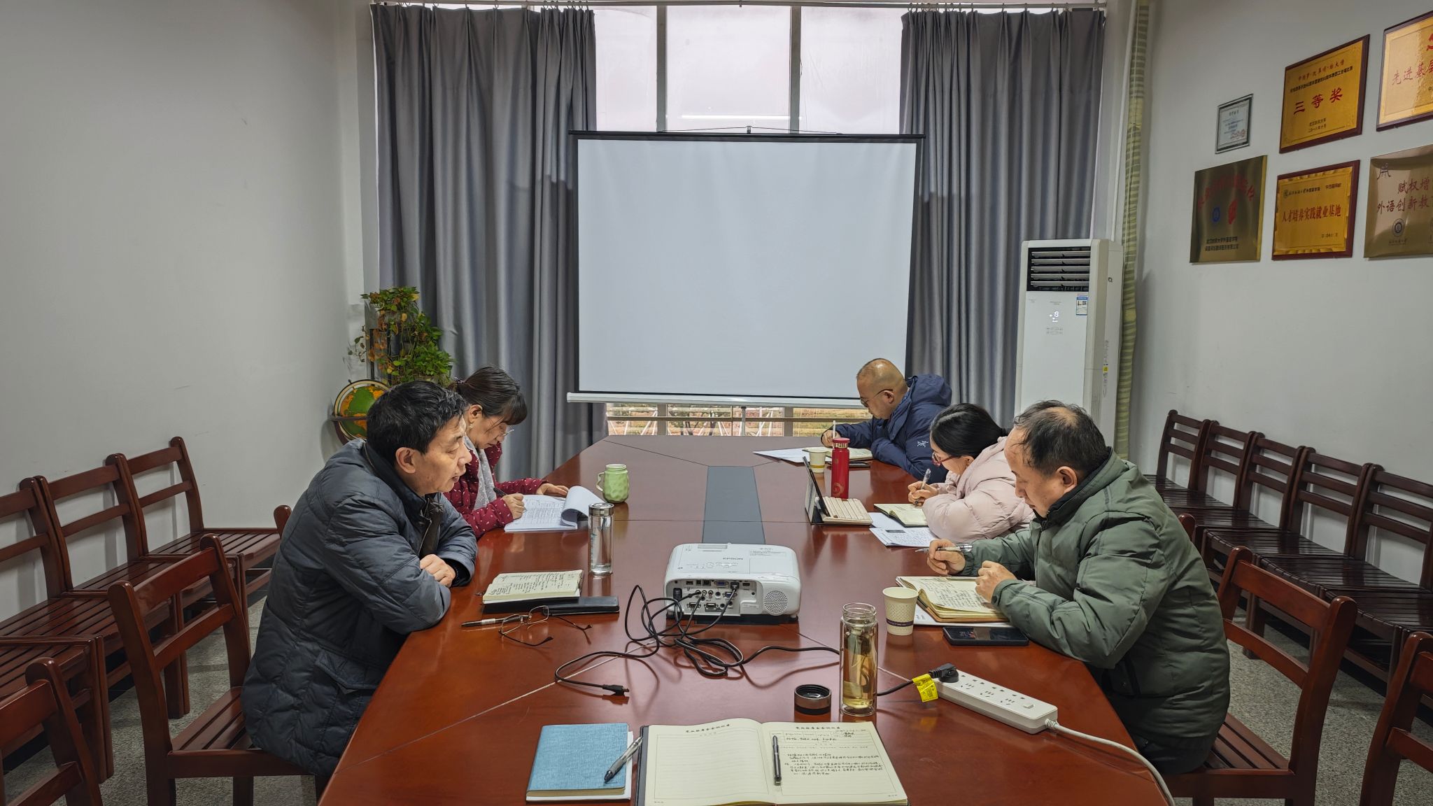 在04-303会议室召开党委理论学习中心组学习会议,学院党委书记胡中原主持会议,院长谭燕保,副院长罗绮伦、刘方荣,副书记彭阳慈航参加会议。