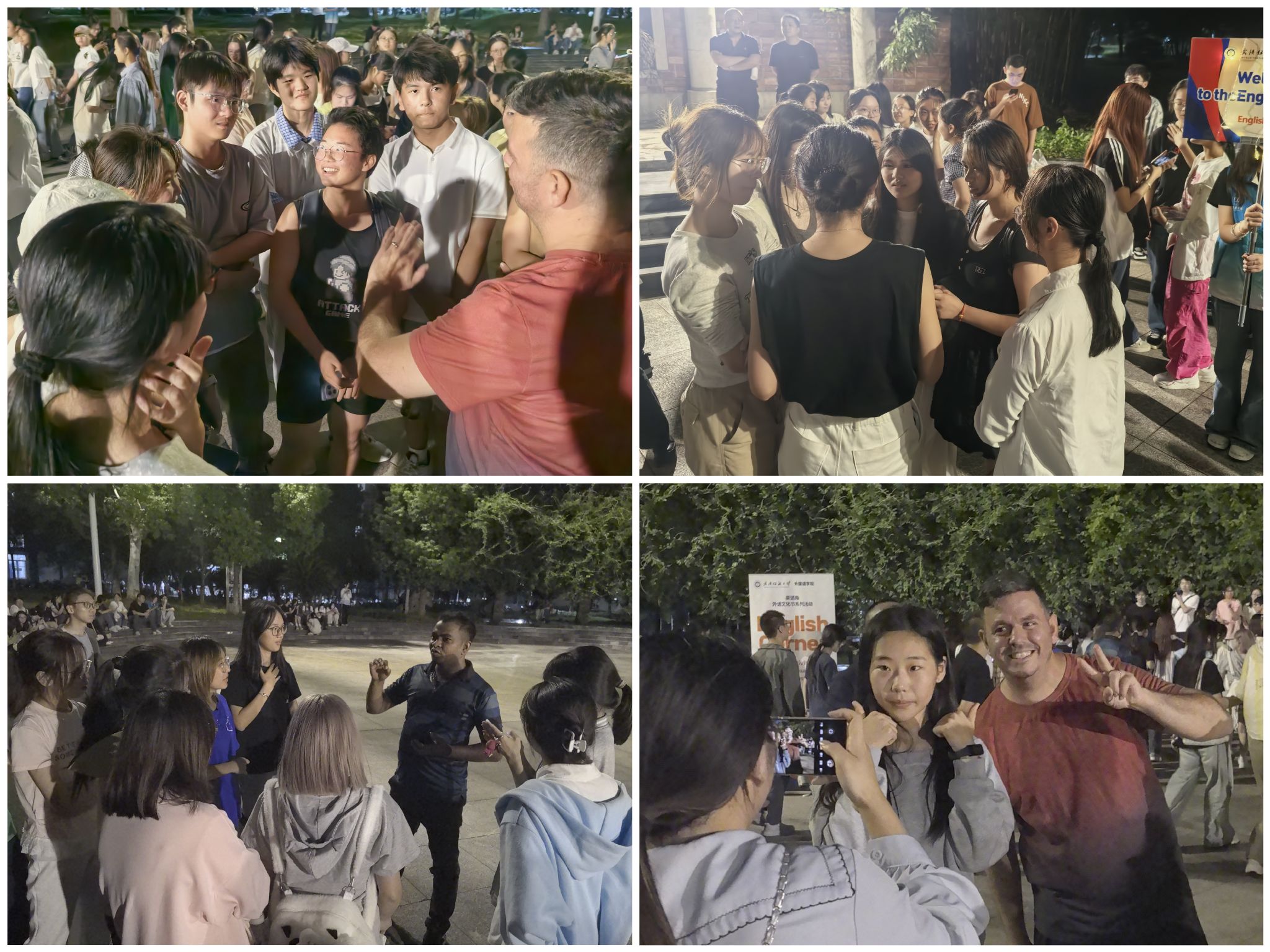 活动在设计上别出心裁,突破了传统单调的对话模式。在外教和老师们的引导下,活动现场设置了多个有趣的互动环节。同学们围绕各类贴近生活、充满趣味的话题畅所欲言,从校园生活、兴趣爱好到中外文化差异,展开了热烈而愉快的交流。至善广场上欢声笑语不断,思想的火花在英语的碰撞中频频闪现。老师们幽默风趣的谈吐和地道的表达方式,极大地激发了同学们开口说英语的兴趣和信心。