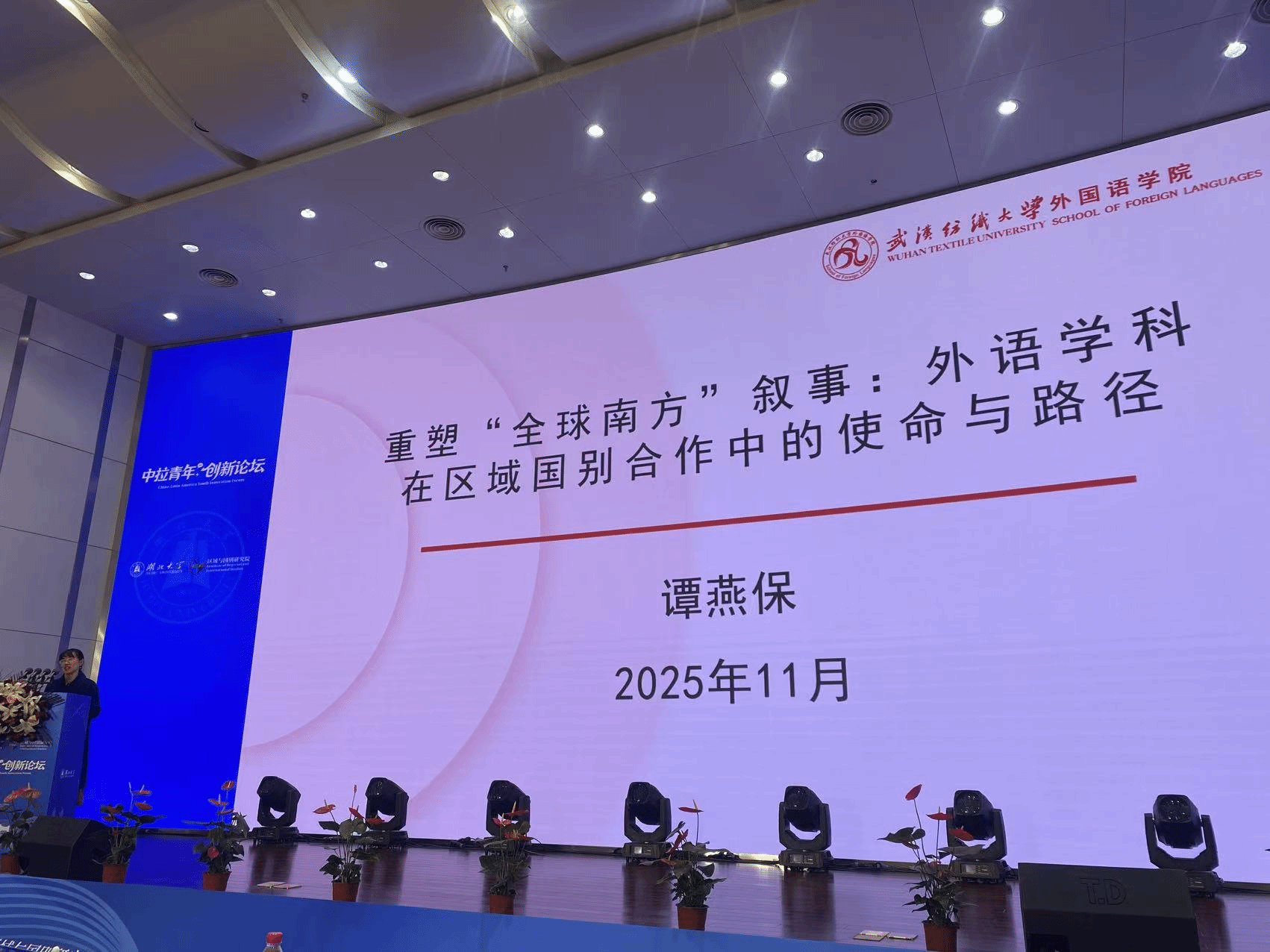 院长谭燕保教授受邀出席,并以“重塑‘全球南方’叙事:外语学科在区域国别合作中的使命与路径”为题作主旨发言,从多维度深入剖析外语学科在全球叙事体系中的重要作用。