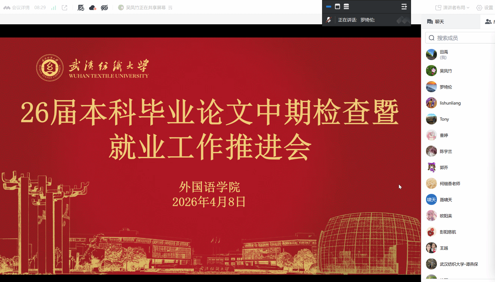 通过线上会议平台召开了26届本科毕业论文中期检查暨就业工作推进会。学院领导、各专业负责人、全体毕业论文指导教师及毕业班辅导员参加了会议。