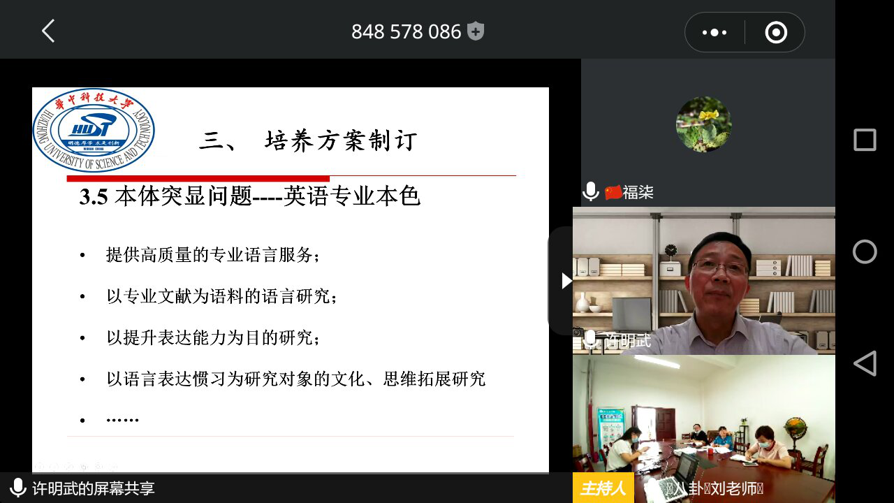 院长、博士生导师许明武教授“云端开讲”,释疑新时代英语专业建设。此次线上会议由成人文学