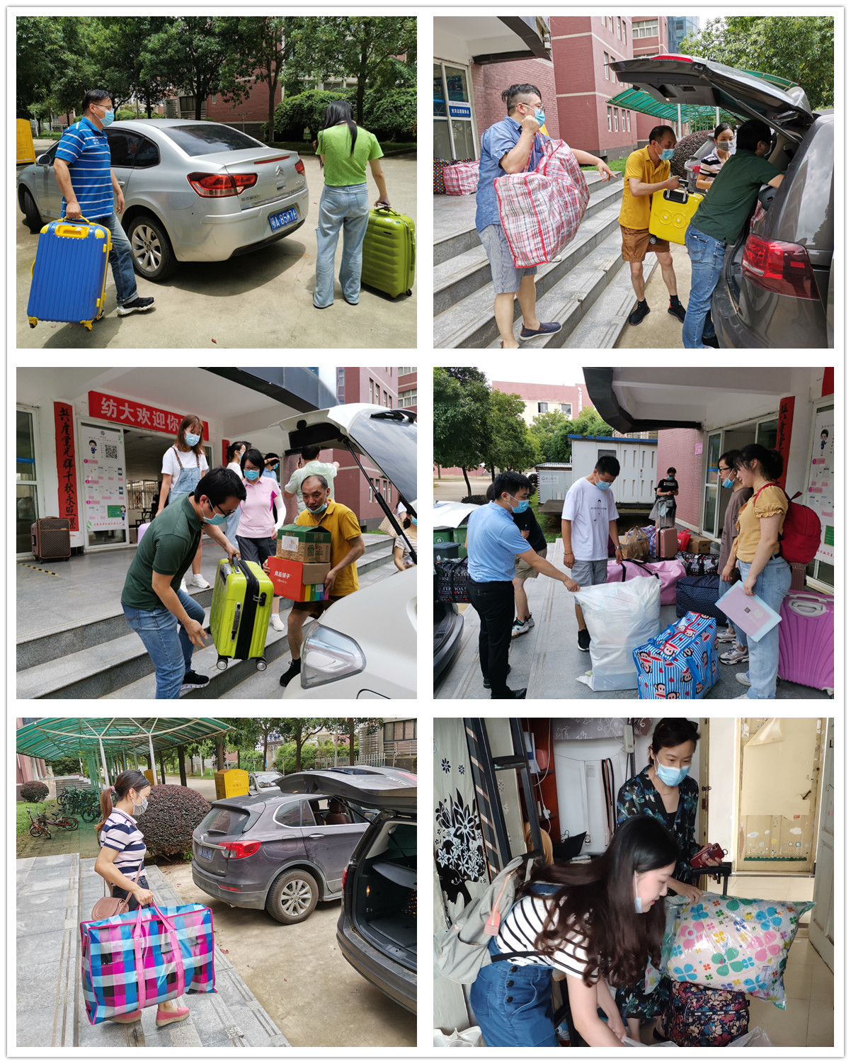 毕业生返校期间,学院老师积极参与毕业生接送、行李打包搬运工作,自驾私家车频繁往返于校门口、地铁站、宿舍楼、教学楼、快递点等地,最大限度减轻学生负担,提高运转效率。院长谭燕保每天坚持为毕业生拨穗、与毕业生合影留念,学院党委书记胡中原每天坚持送走最后一个毕业生才下班,毕业班辅导员阎浩被毕业生戏称为最敬业的“滴滴司机”,还有副院长柯群胜、罗绮伦,副书记王芳,院办主任刘晨昊、英语系副主任钱茂华,资深教师王敬忠、曹火群、庄小华,青年教师王越、曹福然,实验室老师邱凌云、苏晓勇,教学秘书张小燕,辅导员卫周瑶、聂啸天……老师们或是在帮毕业生打包搬运行李每天汗流浃背,或是为毕业生办理离校手续让毕业生感受离别前的温暖,处处彰显真挚的师生情谊。